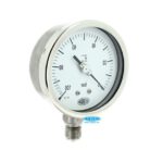 Đồng hồ áp suất Georgin 0~100bar được chế tạo hoàn toàn từ vật liệu inox cao cấp. Đa số vỏ đồng hồ làm từ inox 304, chân kết nối áp suất là inox 316.