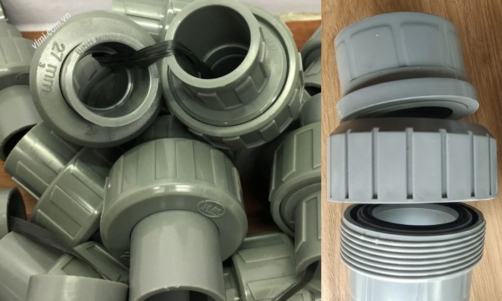 - Nhựa PVC: Là vật liệu phổ biến của rắc co nhựa 27, có chi phí thấp, chịu áp suất vừa phải phù hợp hệ thống đường ống nước lạnh